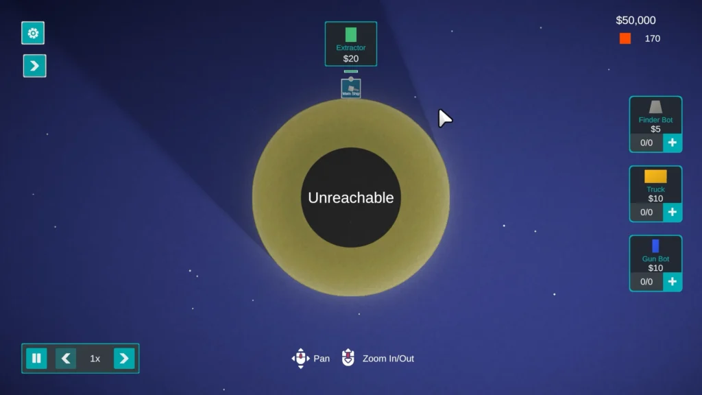 Mine, defend, and profit across planets. Expand your operation, survive enemy waves, and discover dangerous hidden worlds in this minimalist sci-fi strategy shooter.